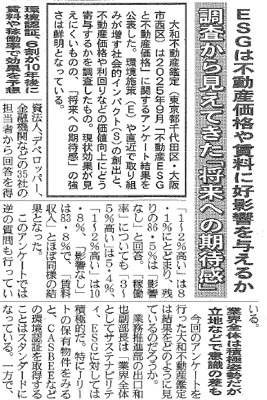 当社ESG不動産チーム実施の「不動産ESGと不動産価格」に関するアンケート結果および社員のコメントが掲載されました。